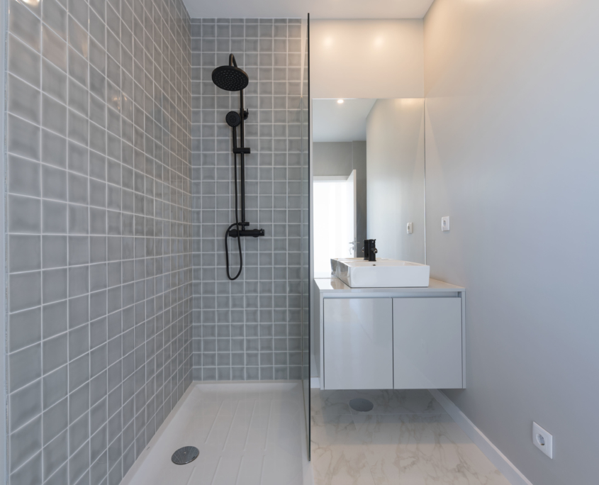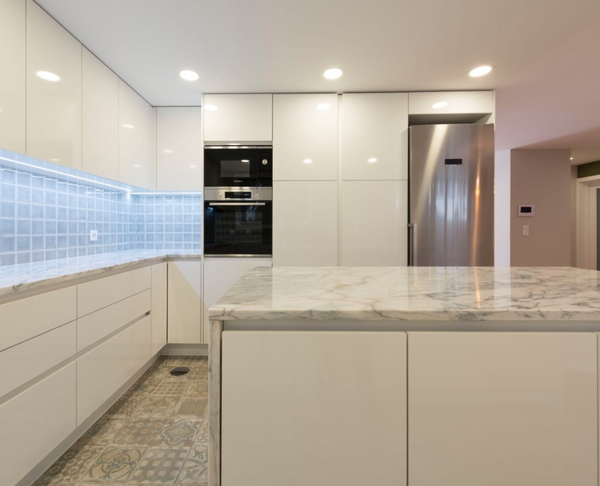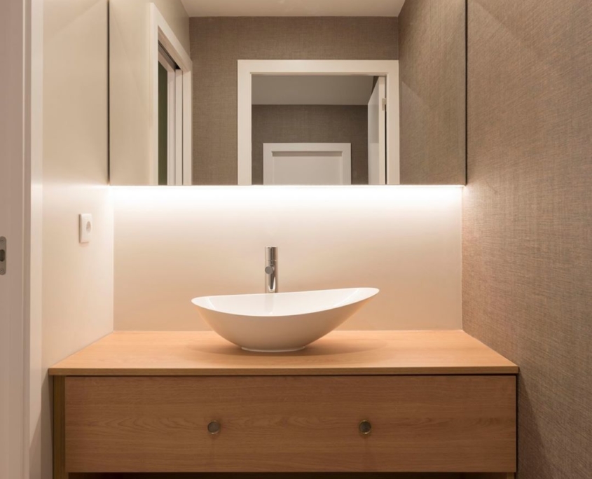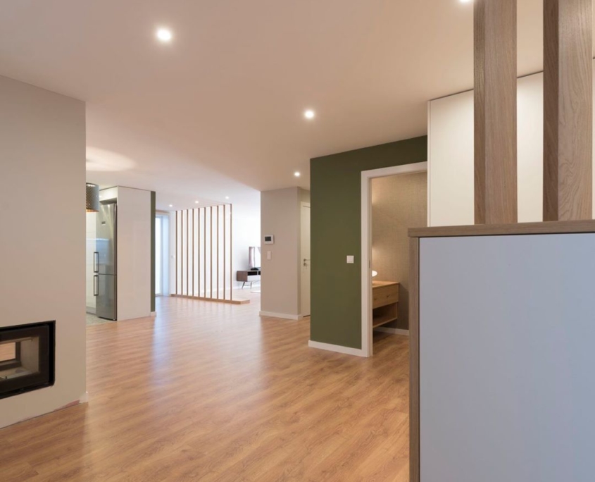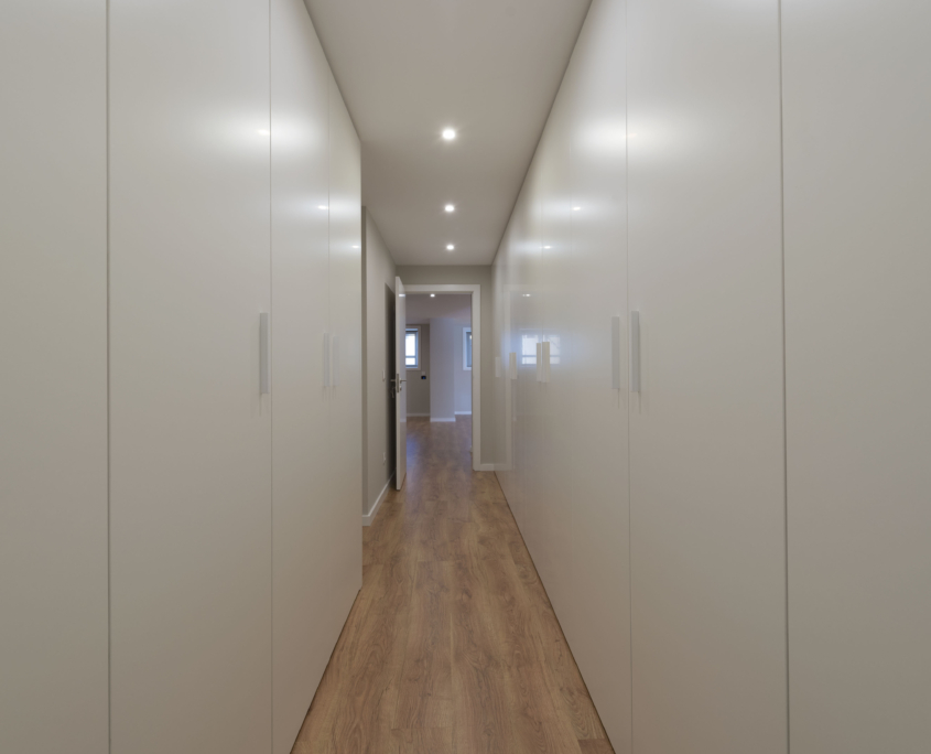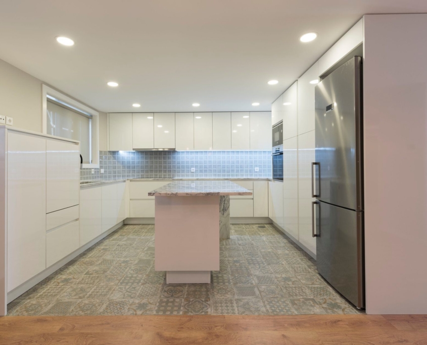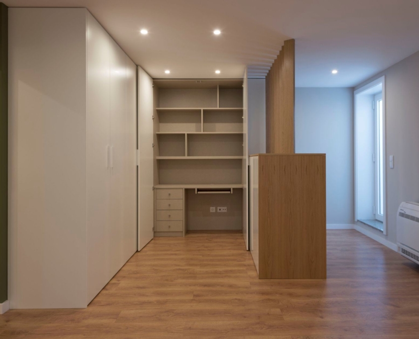O desafio principal na remodelação desta moradia, localizada no centro da Maia, foi o de transformar uma cave, semi enterrada, num agradável T1 composto por uma suite, um amplo closet, uma cozinha moderna e um escritório que surge numa área de arrumação.