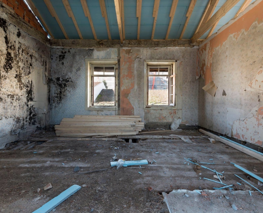 As moradias apresentavam-se em estado avançado de deterioração sendo apenas aproveitadas as fachadas principais e as empenas laterais.